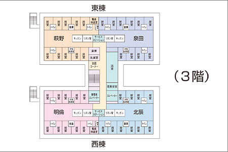 ご利用者の生活スタイルを尊重するために、居室は全室個室でプライバシーが確保されています。